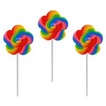 Piruletas y ventosas de arcoíris, flores, arcoíris, dulces y duros
